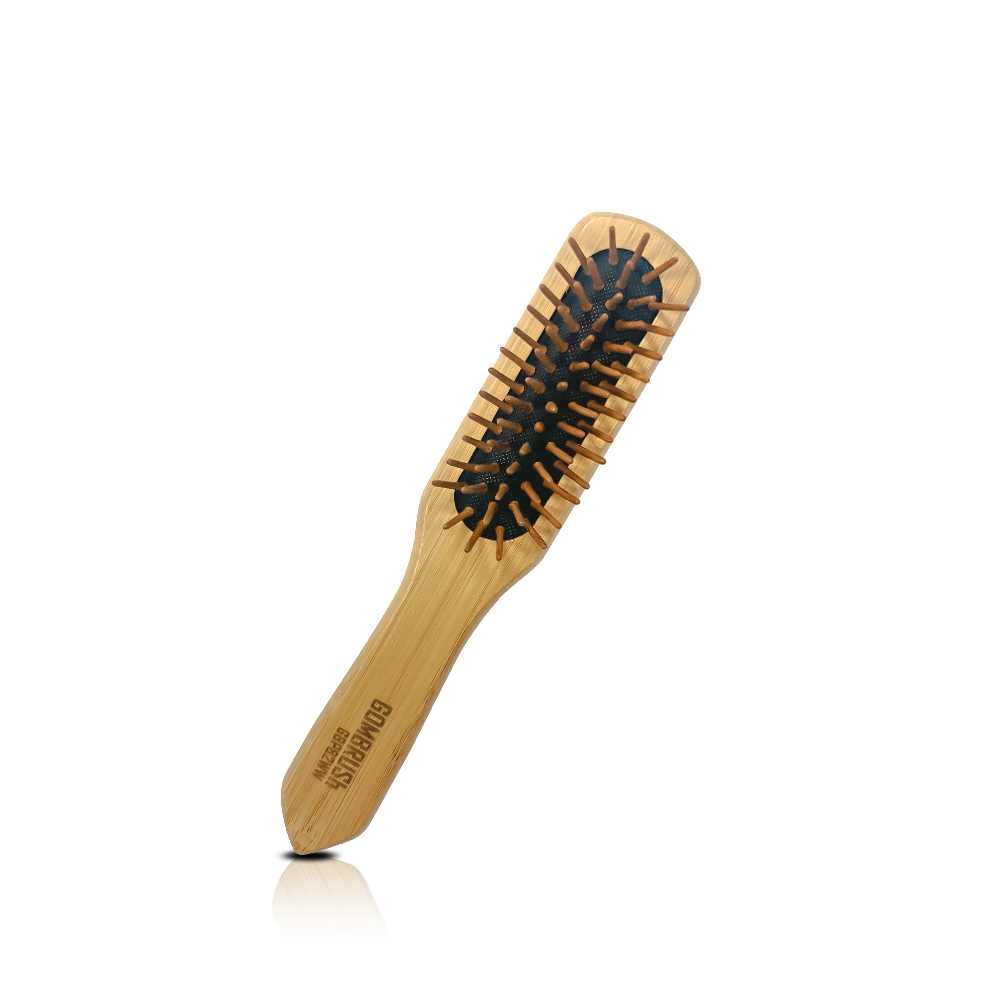 The H2PRO GOMBRUSH SMALL BAMBOO WOOD BRISTLE PADDLE BRUSH is the ideal brush for styling and detangling wet or dry hair. High-quality bamboo bristles allow you to effortlessly style your hair without snagging or causing damage. Ideal for all types of hair.