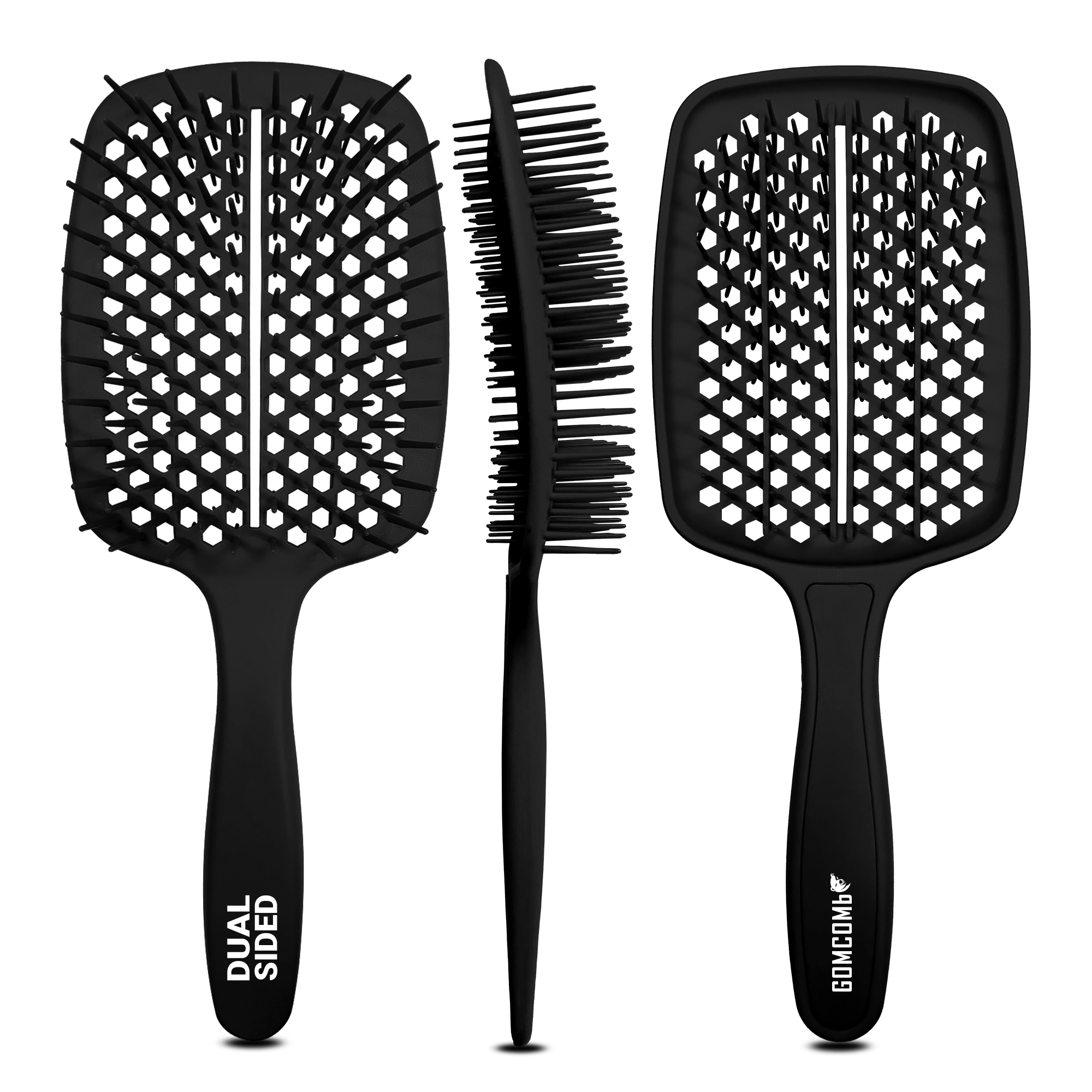 H2PRO GOMCOMb DUAL SIDED BRUSH NO TANGLE NO KNOT NO DAMAGE - BLACK - GBB001BK - PROFESSIONAL HAIR BRUSH