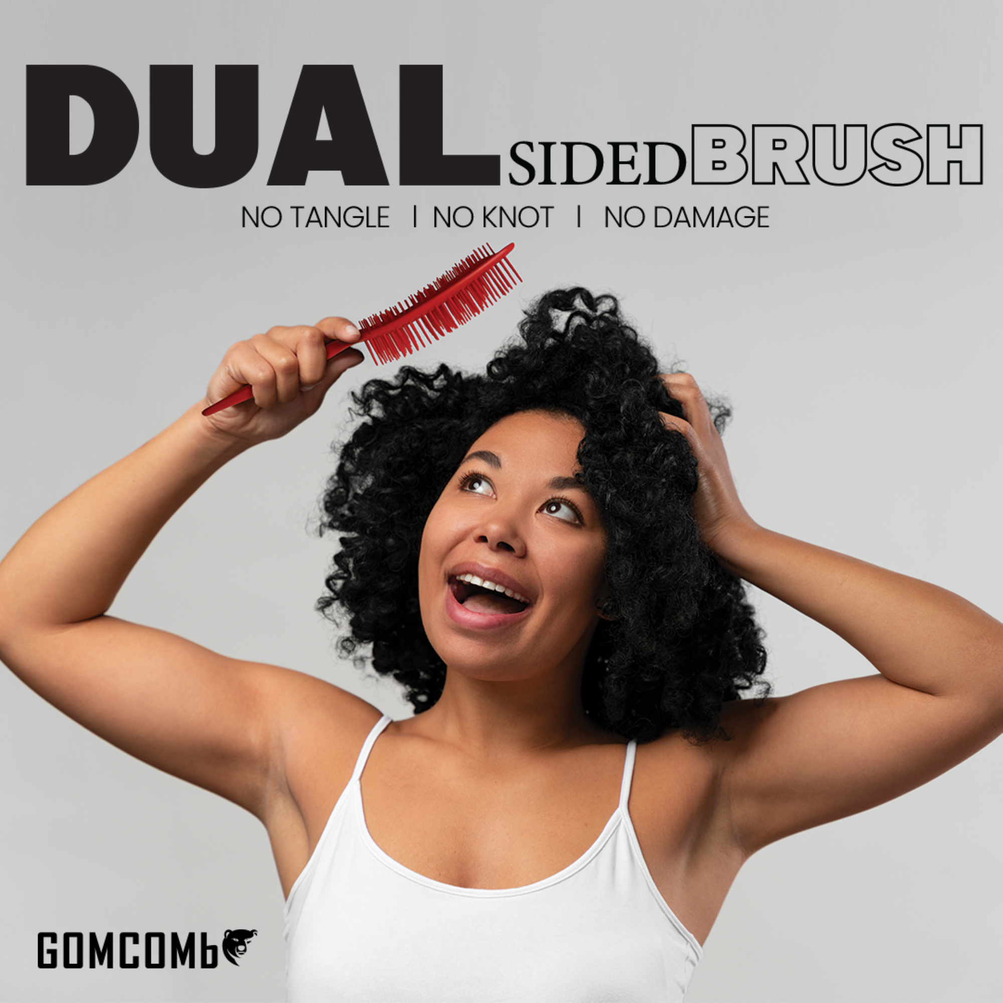 The H2PRO GOMCOMb DUAL SIDED BRUSH NO TANGLE NO KNOT NO DAMAGE - BLACK is the ideal brush for snag-free detangling hair. Ideal for all types of hair.